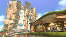 Racers traverse through a number of different environments, whether that be fighting in the air for items, scouring the ground for fallen fruit that act like mushrooms, or sliding across sand on the oceanfront.