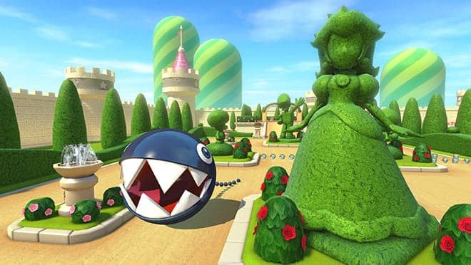 The flower beds that used to make navigating around them difficult in the original on DS and the Wii remake have been abruptly removed, but the newly-remade course makes a big change for lap 3.