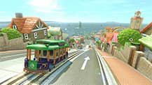 A final downhill straight where trolleys take up a lot of space can be the site of many long-range plays with projectile items. In fact, if you hit the first boost ramp at the top of the hill and throw a Bob-Omb off of it, you can hit the leaders that are much further ahead.