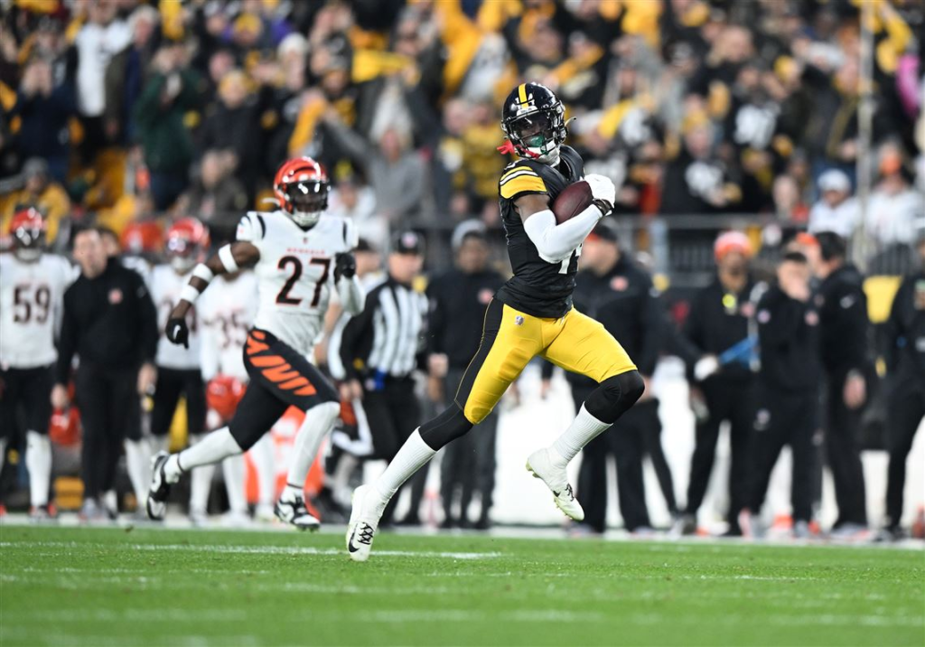 First, he marched into Acrisure Stadium and put on a clinic against a hobbled Bengals squad, taking a first-quarter pass from Rudolph all the way to pay dirt to put Pittsburgh on the board for the first time in eight weeks.